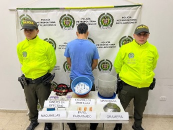 La captura se materializó luego de que efectivos de la SIJIN, mediante diligencia de registro y allanamiento al inmueble donde residía esta persona encontraran más de 400 gramos de marihuana tipo cripy sin dosificar, 40 cigarrillos de marihuana y varios elementos para la dosificación de este estupefaciente.El capturado y los elementos incautados fueron presentados ante las autoridades judiciales y serán estas las que definan su situación jurídica.
